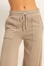 These contemporary pants are crafted from soft burnout washed french terry, featuring a flattering high-rise elastic waistband with a functional drawstring tie. The cut is a dramatic oversized wide-leg silhouette with prominent front-facing patch pockets. Pair with a cropped sweatshirt and chunky sneakers for a cozy, yet chic look.