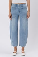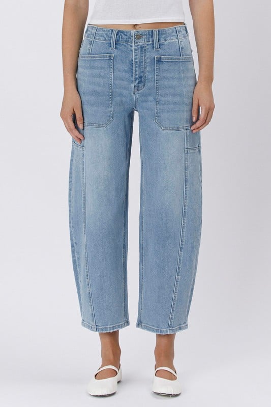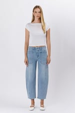 HIGH RISE ELASTIC BAND BARREL JEANS
