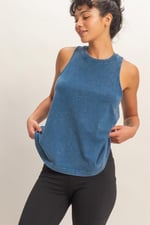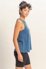 Embrace the relaxed look in this sleeveless top that shapes a round neckline and a relaxed bodice that extends into a medium length hem. Pair with a contrasting bottom to lend a finishing touch.