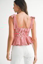 Pin Stripe Shoulder Tie Strap Peplum Top - LATE APRIL