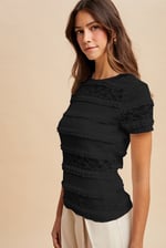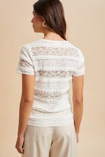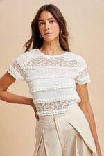 STRETCH FRILL LACE SHORT SLEEVE KNIT TOP