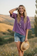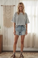 A relaxed and effortlessly chic striped knit top featuring a boxy oversized fit and drop shoulder sleeves for a laid-back, boho look. Made from soft, breathable fabric, it's perfect for pairing with denim shorts or casual pants. The wide crew neckline and clean hem make it easy to style tucked in or loose for an easygoing everyday outfit. striped top, oversized tee, relaxed fit, knit top, casual wear, boho chic, wide sleeve top, breathable fabric, Free People style, weekend outfit, everyday top, soft knit, lightweight stripes