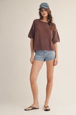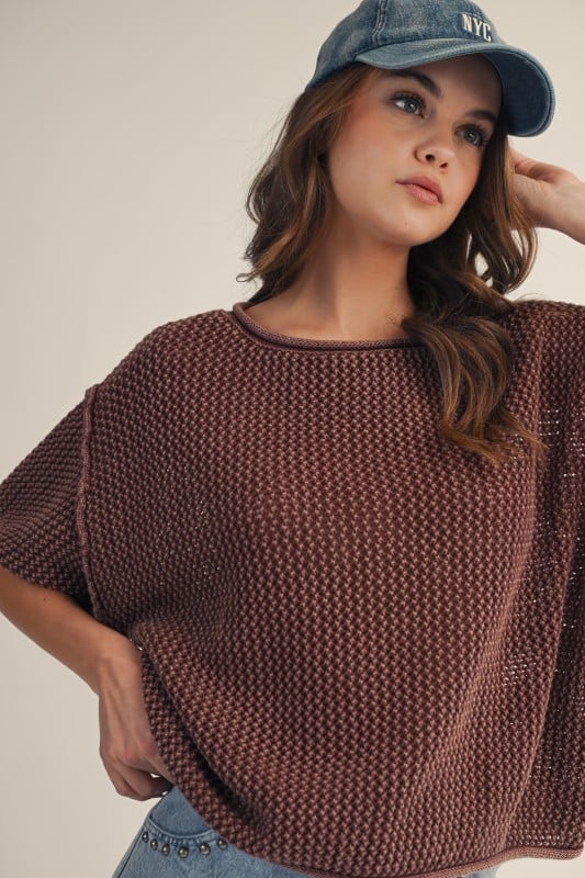 WASHED VINTAGE SOFT HAND KNIT MESH TOP - MAY